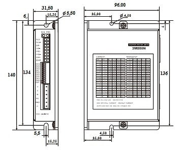 Эффективность, функциональность и простота электронного драйвера 3M880N предназначенного для эксплуатации с трехфазными шаговыми моторами, включает в себя следующие функции: автоматическое параметрическое регулирование ( для обеспечения оптимальной производительности двигателя), поддержка функции холостого тестирования двигателя, поддержка функции запоминания (для записи последней позиции ротора перед отключением, исключение проворотов ротора при повторном включении и т.д.), поддержку функции шагового сглаживания (есть возможность, компенсировать входной импульс, сделать работу двигателя максимально бесступенчатой и равномерной), поддержку автоматической функции "half current" (в статическом состоянии обеспечивает эффективное потребление токов, оберегает устройство от перегрева), функцию автоматического дробления шага ( она обеспечивает оптимальную работу двигателя при сверх дроблении; аварийную функцию срабатывания «ERR –сигнал» при максимальных токах - 10мА, а также аварийное срабатывание сигнала на входе – при достижении импульсной частоты 400KHz.Рекомендуется использовать с трехфазными шаговыми двигателями: 3S57Q-04042 , 3S57Q-04056 , 3S57Q-04079 , 3S85Q-04067 , 3S85Q04097 .