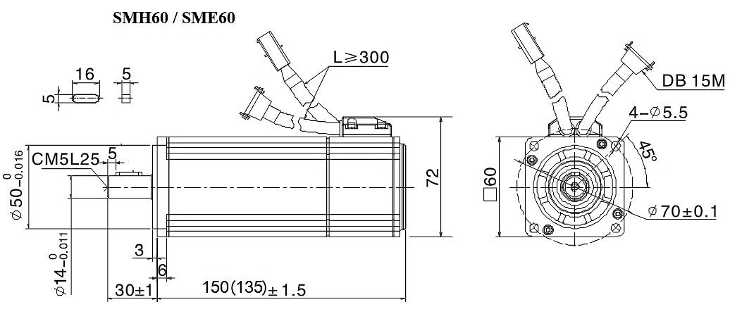 Серводвигатель SMH60 и SME60 , SMH60-B и SME60-B Номинальная мощность - 400 Вт Момент удержания - 1,39Nm