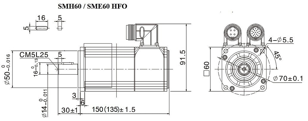 | Исполнение серводвигателя с HFO-разъемом |