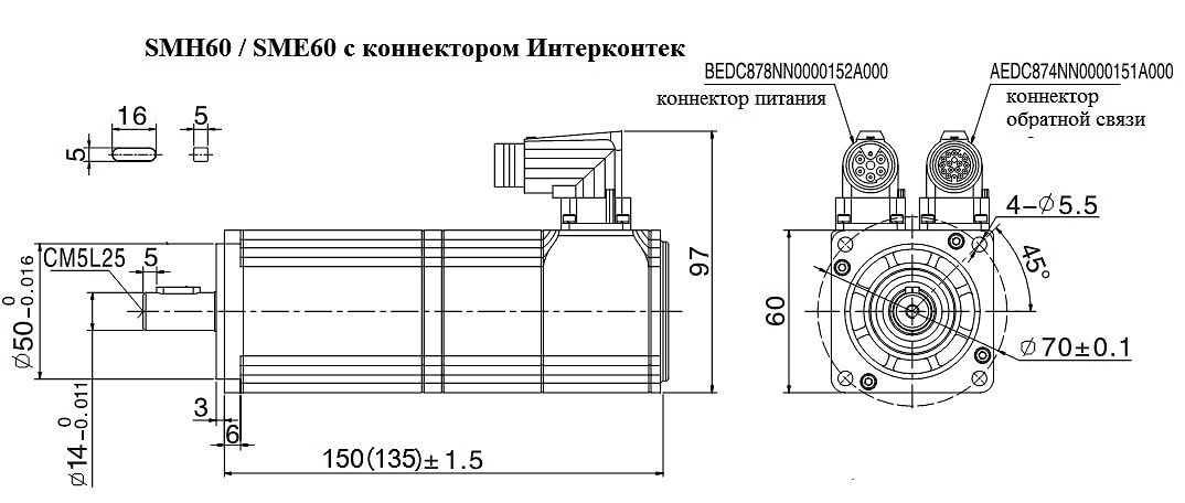 | Исполнение серводвигателя с разъемом Интерконтек |