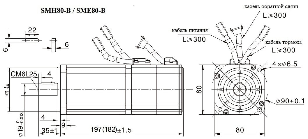 Серводвигатель SMH80 и SME80 , SMH80-B и SME80-B Номинальная мощность - 750 Вт Момент удержания - 2.63Nm