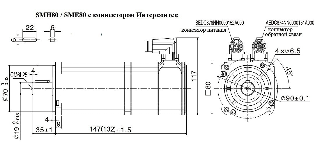 | Исполнение серводвигателя с разъемом Интерконтек . |