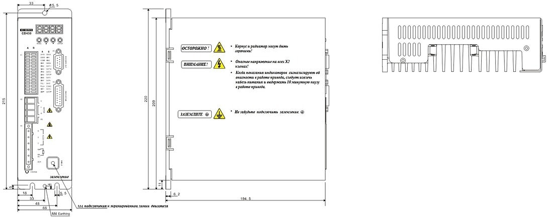 Сервоусилитель CD 4 2 0 (AC220V) Описание коммуникационных портов сервоусилителей CD Схемы подключения для режимов Сервоусилитель CD 4 2 0 (AC220V) Детали Рисунок. 1 – Алюминиевый корпус Кожух радиатора 2 – X1 (Вертикаль А) 24VS и GNDS : Питание ...