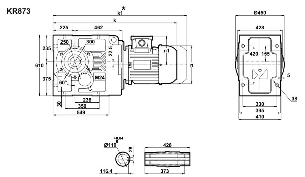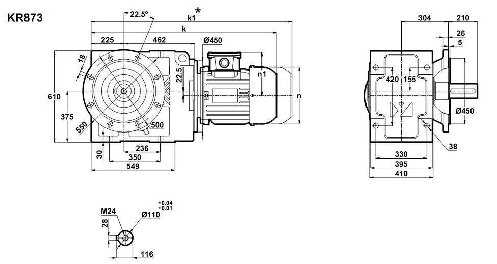 Спецификация конического мотор-редуктора KR873:Подводимая мощность - 30,0кВт