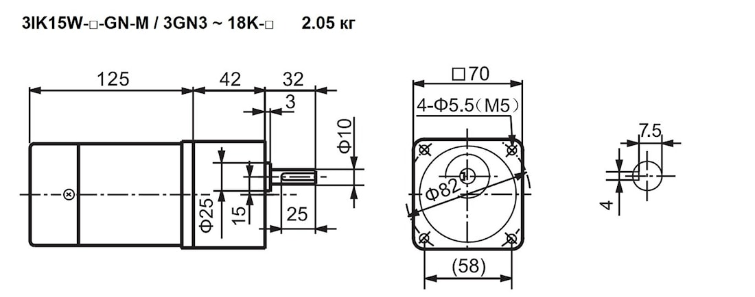 | 3IK15W-GN 3RK15W-GN 3IK15W-GN-M | 3GN3K | 10 | - | 500 | 3.0 | 0.30 | Стандарт – (1.55) 1.65 С тормозом – 2.05 |