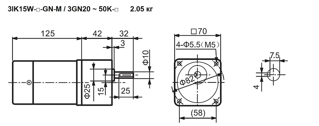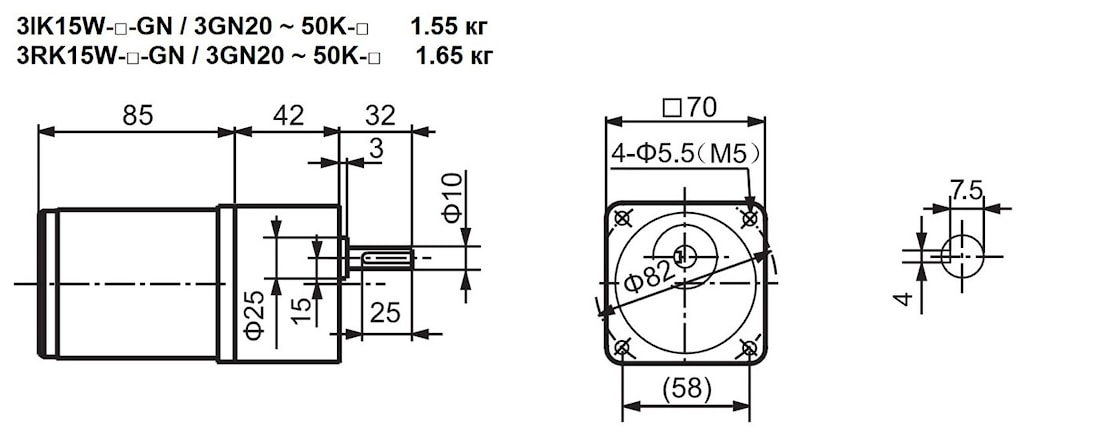 | 3IK15W-GN 3RK15W-GN 3IK15W-GN-M | 3GN20K | 10 | - | 75 | 20 | 2.0 | Стандарт - 1.55 (1.65) С тормозом – 2.05 |