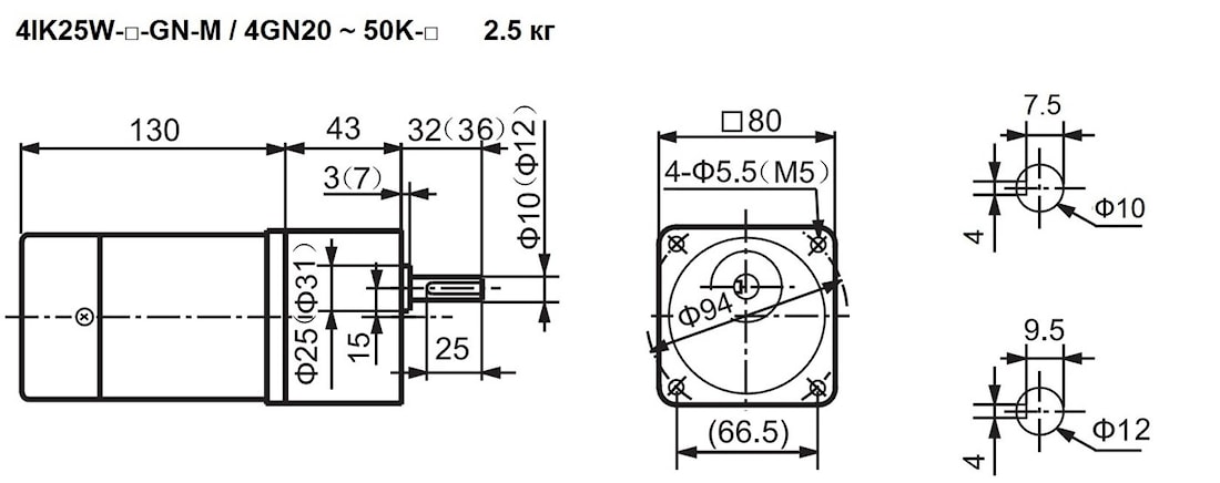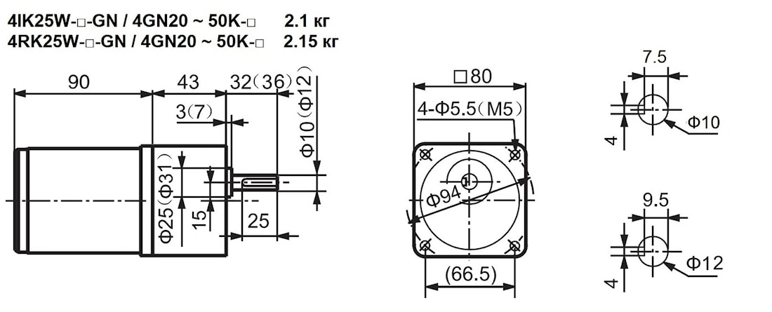 | 4IK25W-GN 4RK25W-GN 4IK25W-GN-M | 4GN20K | 10, 12 | - | 75 | 20 | 3.3 | Стандарт – 2.1 С тормозом – 2.5 |