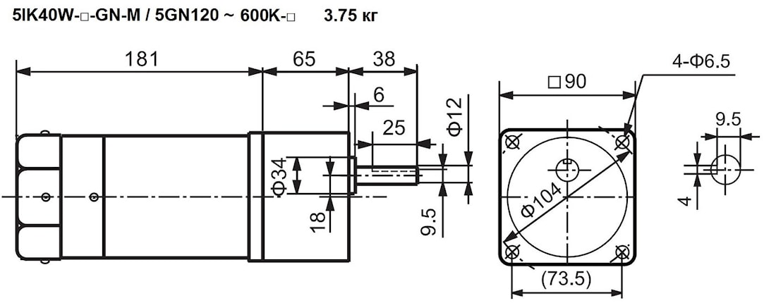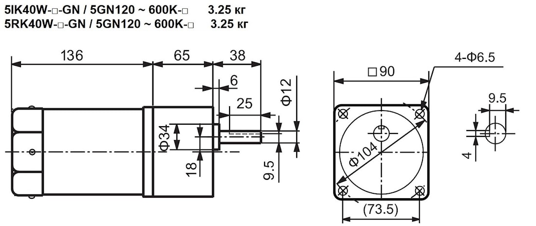 | 5IK40W-GN 5RK40W-GN 5IK40W-GN-M | 5GN120K | 12, 15 | - | 12.5 | 120 | 20 | Стандарт – 3.25 С тормозом – 3.75 |