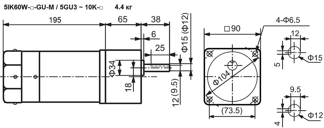 | 5IK60W-GU 5RK60W-GU 5IK60W-GU-M | 5GU3K | 12, 15 | - | 500 | 3.0 | 1.2 | Стандарт – 3.9 Фланец – 3.9 С тормозом – 4.4 |