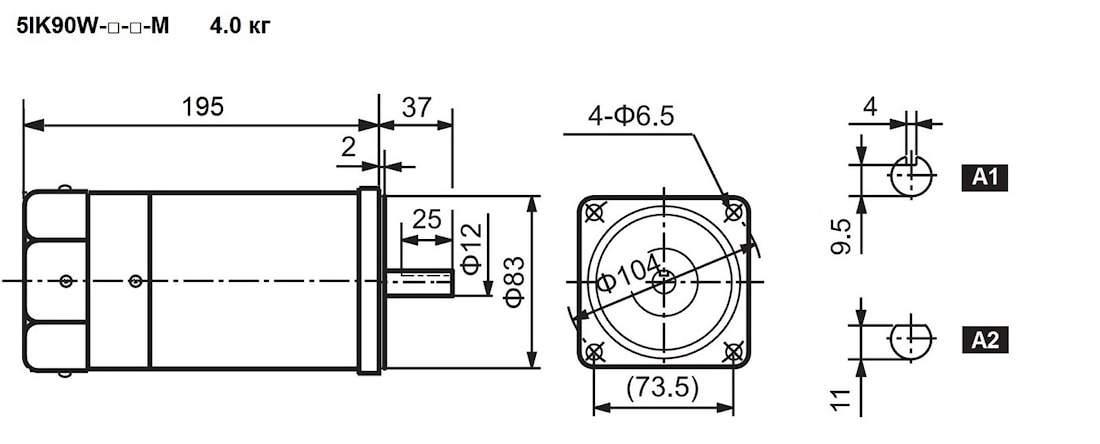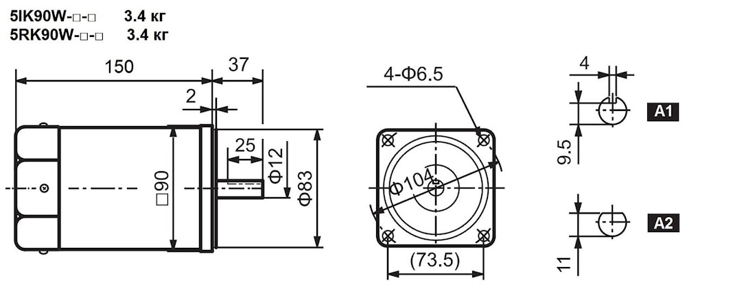 Мини электродвигатель 5IK90W, 5RK90W, 5IK90W-M (90 Ватт) Номинальная мощность - 0,09 кВт Выходные обороты: 1300 об/мин