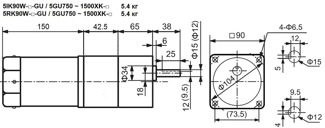 | 5IK90W-GU 5RK90W-GU 5IK90W-GU-M | 5GU750XK | 12, 15 | - | 2.2 | 750 | 25 | Стандарт – 5.4 С тормозом – 5.9 |