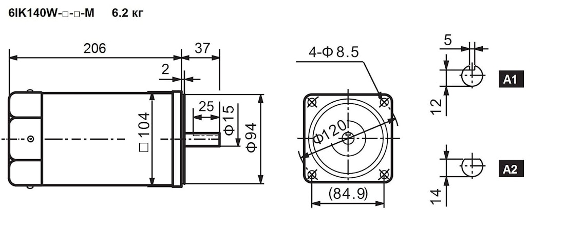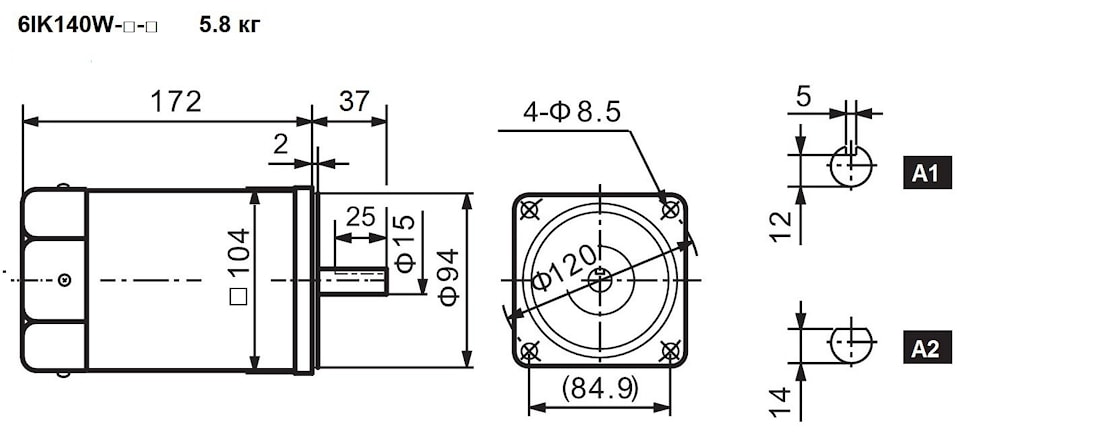 | 6IK140W-C1-A1(A2)-M | 140Вт*1300об | 1 | 110 | 50 | 2.05 | 32 | 990 | 900 | Прерывистый Краткосрочный | ||
