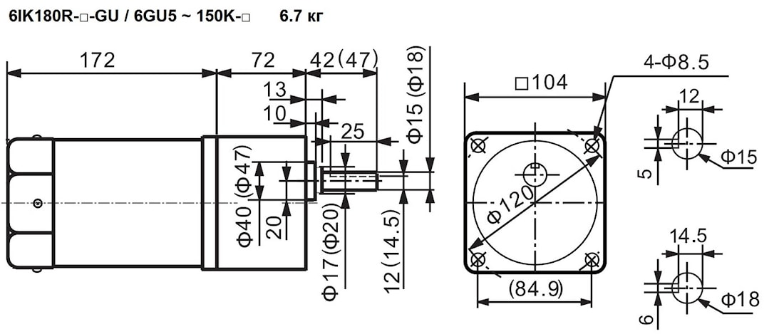 | 6IK180R-C1-GU | 6GU15K | 15, 18 | - | 110 | 40 | 6.0 | 93 | 15 | 90 | 1.0 | 6.7 |