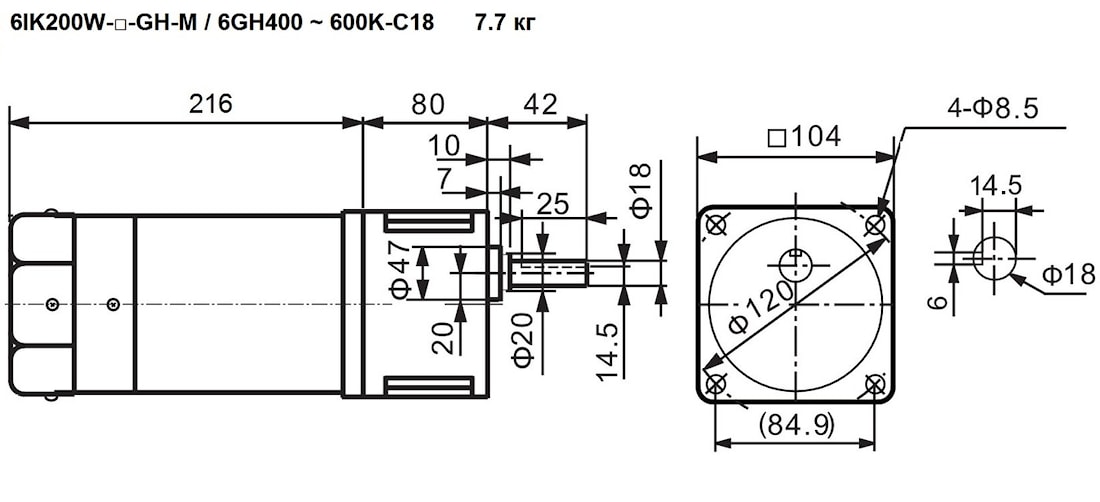 | 6IK200W-GH 6IK200W-GH-M | 6GH400K | 18 | - | 3.75 | 400 | 115 | Изностойкий – 7.0 кг С тормозом – 7.7 кг |