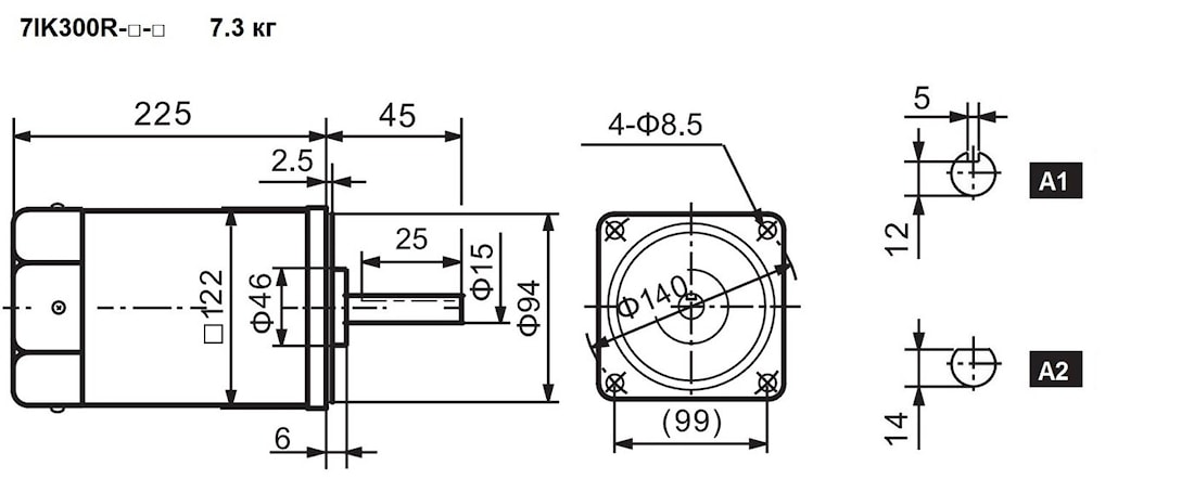| 7IK300R-C1 | - | A1 | A2 | 110 | 60 | 90 | 1400 | 4.3 | 26 | 1.28 | 7.3 |