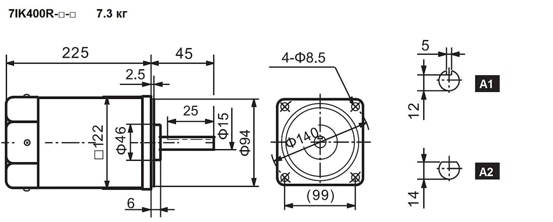 | 7IK400R-C1 | - | A1 | A2 | 110 | 80 | 90 | 1400 | 3.0 | 35 | 2.00 | 7.3 |