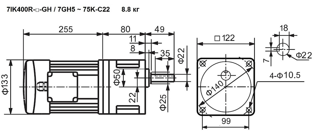 | 7IK400R-C1-GH / | 7GH50K | 22 | - | 110 | 80 | 1.8 | 28 | 60 | 155 | 2.00 | 8.8 |