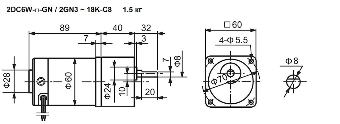 DC мотор редуктор 2DC6W-GN / 2GN3 ~ 18 (6 Ватт) 100 об/мин ... 600 об/мин