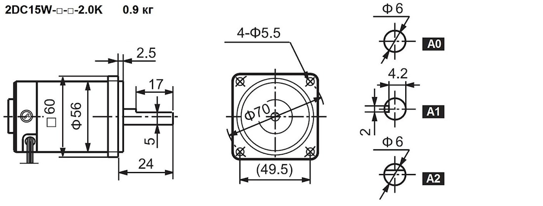 | 2DC15W-24V-A0(A1, A2)-2.0K | 15Вт*1800об/мин | 24 | 1.0 | 0.08 | 0.18 | |