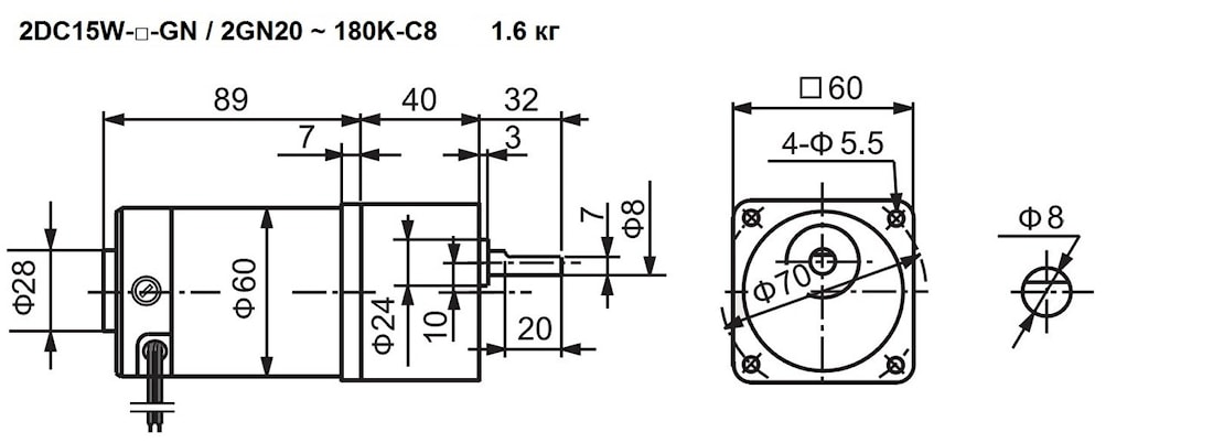 DC мотор редуктор 2DC15W-GN / 2GN20 ~ 180 (15 Ватт) 10 об/мин ... 90 об/мин