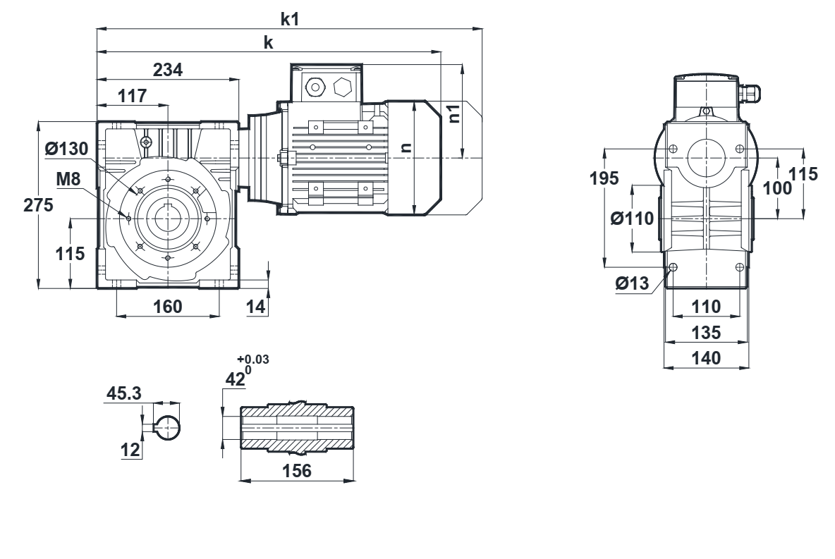 Компактность, плавная и тихоходная работа - главные достоинства этого редуктора. Для того что продлить период эксплуатации на корпусных деталях трансмиссионного механизма предусмотрены поперечные ребра жесткости, которые обеспечивают доступ охлаждающим потокам воздуха.