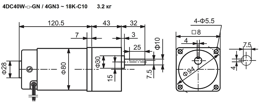 DC мотор редуктор 4DC40W-GN / 4GN3 ~ 18 (40 Ватт) 100 об/мин ... 600 об/мин