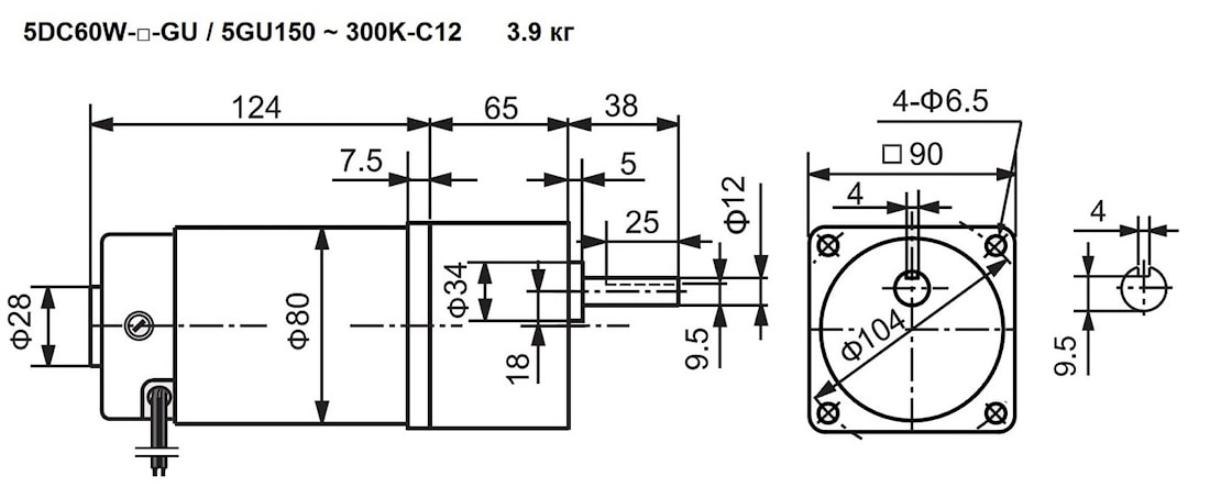 | 5DC60W-12V-GN / 5DC60W-24V-GN / 5DC60W-90V-GN / | 5GN150K | 12 | - | 12 | 150 | 20 | Стандарт – 3.9 |