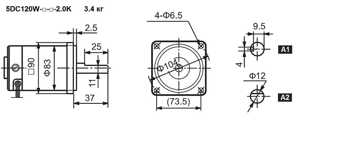 | 5DC120W-90V-A1(A2)-2.0K | 120Вт*1800об/мин | 90 | 3.1 | 0,636 | 2.5 | |