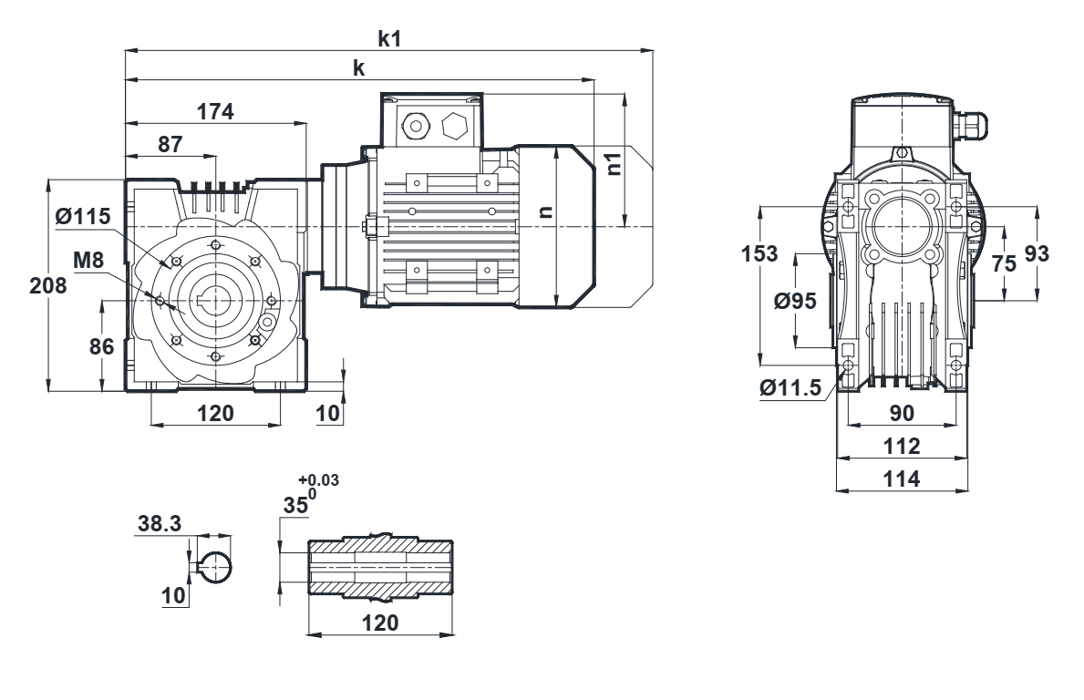 Червячный редуктор EV075 Номинальная мощность - 4,0 кВт Выходные обороты: 140 об/мин ... 180 об/мин