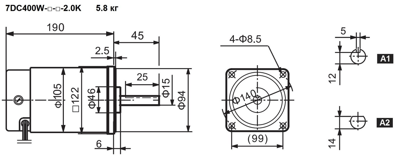 | 7DC400W-220V-A1(A2)-2.0K | 400Вт*1800об/мин | 220 | 2.1 | 2.122 | 7.1 | |
