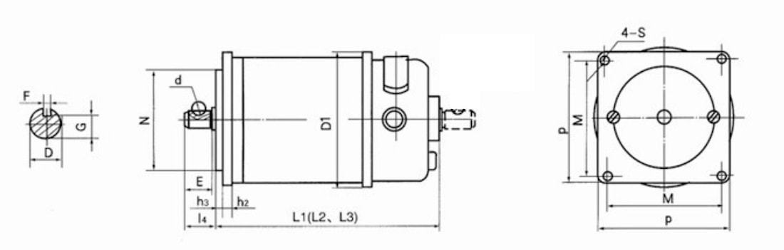 | Модель | N | h2 | h3 | M | P | S | D1 | L1 | L2 | D | E | l4 | F | G | d | m |
