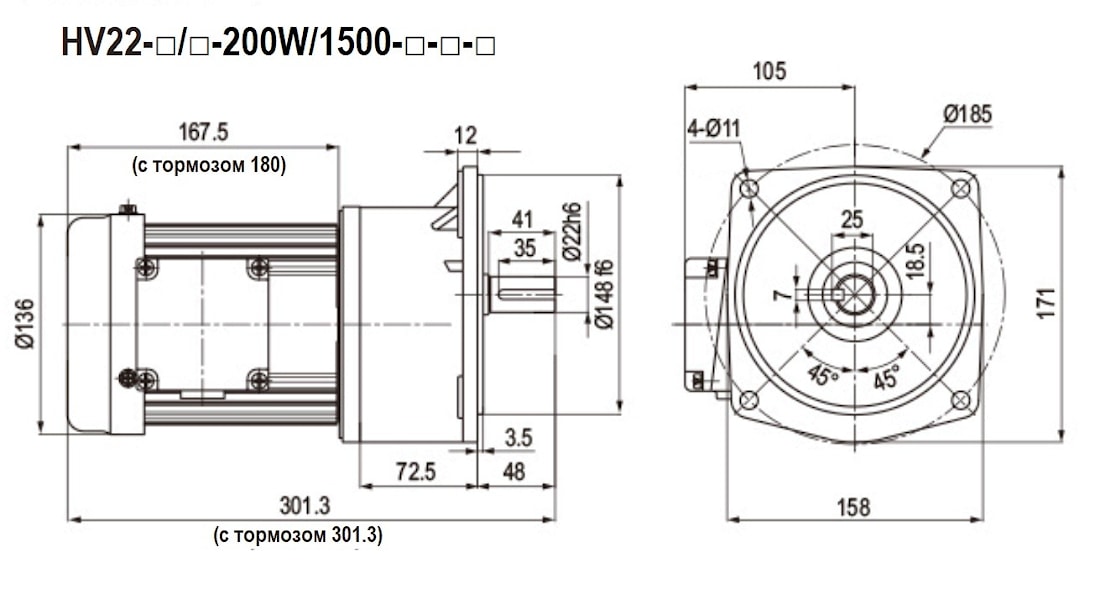 | Мотор-редуктор | HH22 | 100 | / | 15K | 200W | / | 1500 | C2 | BR1 | - |