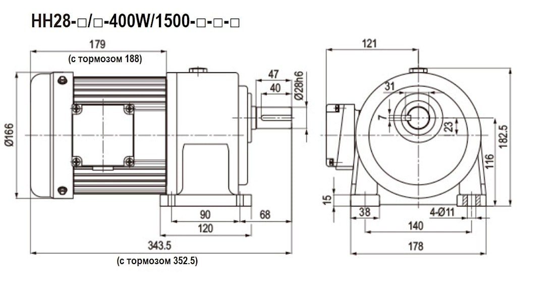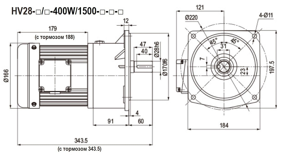 | Мотор-редуктор | HV28 | 100 | / | 15K | 200W | / | 1500 | C2 | BR1 | - |