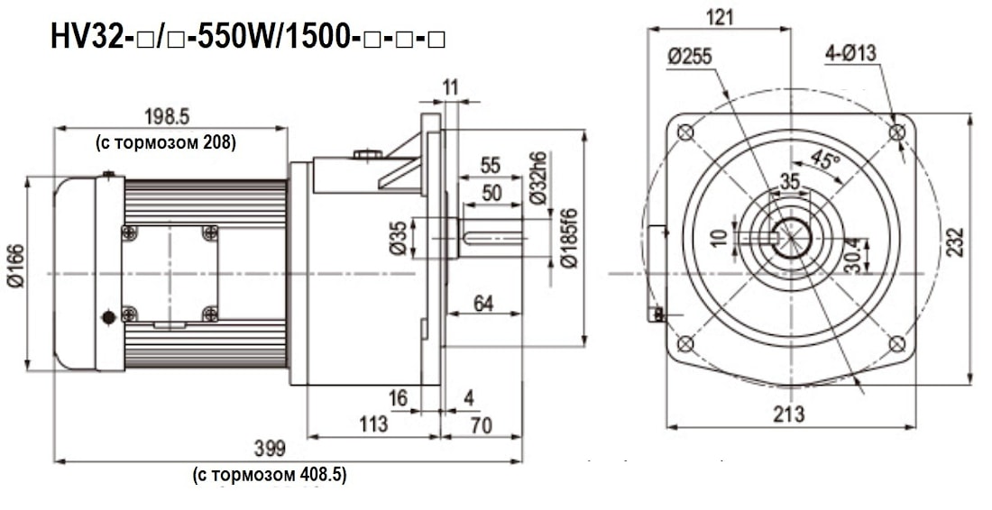 | Мотор-редуктор | HV32 | 50 | / | 30K | 550W | / | 1500 | S2/3 | - | TF |