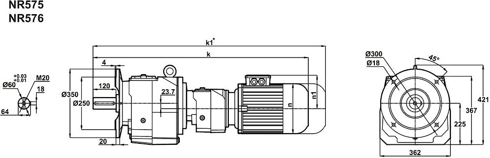 Соосный цилиндрический мотор-редуктор в пяти ступенях MR575-63/4a (исполнение на лапах) и NR575-63/4a (фланцевое исполнение);в шести ступенях MR576-63/4a (исполнение на лапах) и NR576-63/4a (фланцевое исполнение) - это стандартная серия соосных мотор-редукторов с цилиндрическим эвольвентным зацеплением. Эксплуатируются мотор-редукторы от электродвигателя - 0,12кВт при достижении самых минимальных частот вращения выходного вала от 0,3 ~ до 1,0 об/мин.Номинальный крутящий момент - 3000 Nm.