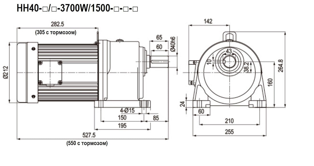 | Соосный мини мотор-редуктор НV40 (фланцевое исполнение) | |