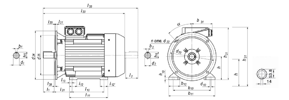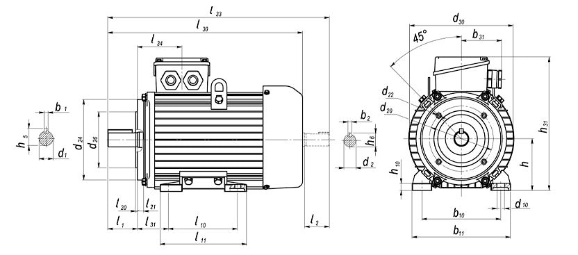 - Присоединительные размеры, исполнение на лапах (IM1081, IM1001, B3):