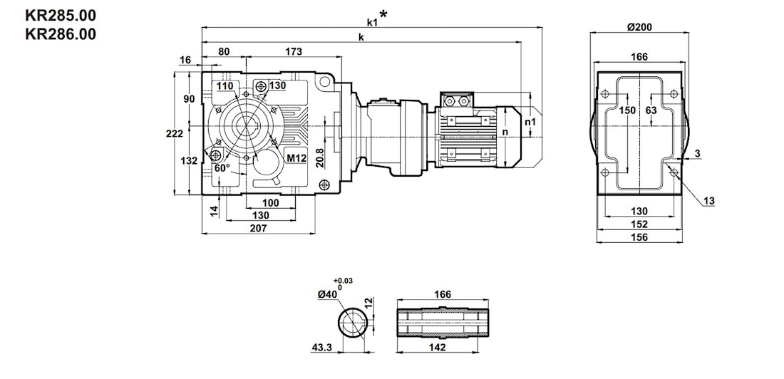 Конический редуктор KR285 и KR286 1,7 об/мин ... 3,8 об/мин