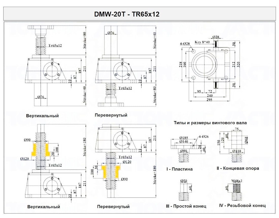 Стандартные винтовые домкраты DMW-20T 8:1 и 24:1 Максимальные статические нагрузки – 20т.;