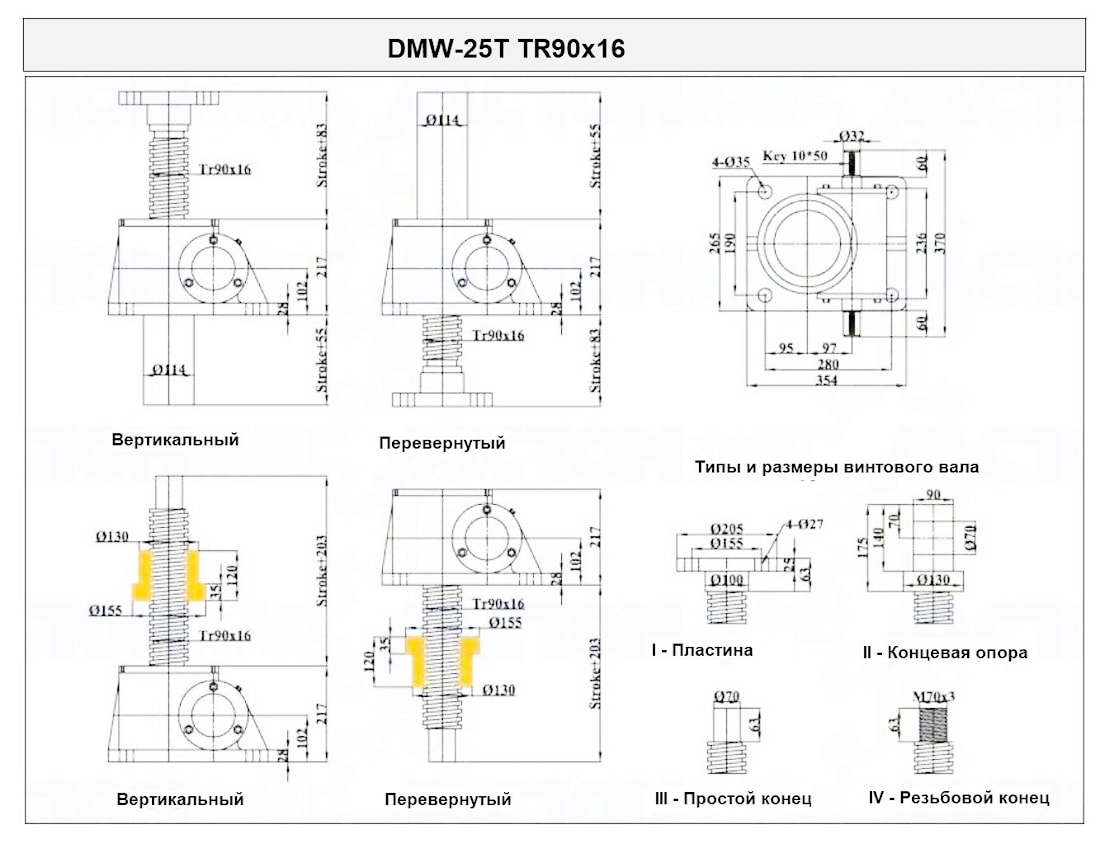 Стандартные винтовые домкраты DMW-25T 9.3:1 и 32:1 Максимальные статические нагрузки – 25т.;