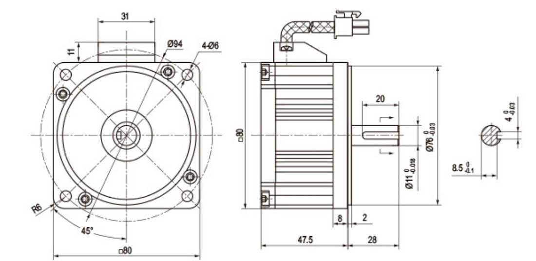 Бесщеточный электродвигатель постоянного тока G4BLD90W – компактный мотор бесщеточного типа с номинальной мощностью 60Ватт с рабочим напряжением 24В и 48В. Номинальная частота вращения выходного вала 2500 и 3000об/мин. Предлагаются две модели с потребляемыми токами 5.8А и 2.8А в зависимости от подключаемых напряжений. На базе вышеуказанного электродвигателя существует мотор-редуктор с передаточными числами от 3 … до 300. Рекомендуемый драйвер – GBL-D08.