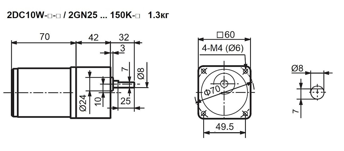 | 30 | 60 | 2.2 | 2DC10W-□-1.8s / 2GN60K-C8 | 8 (исп. лыской) | 1.3 |