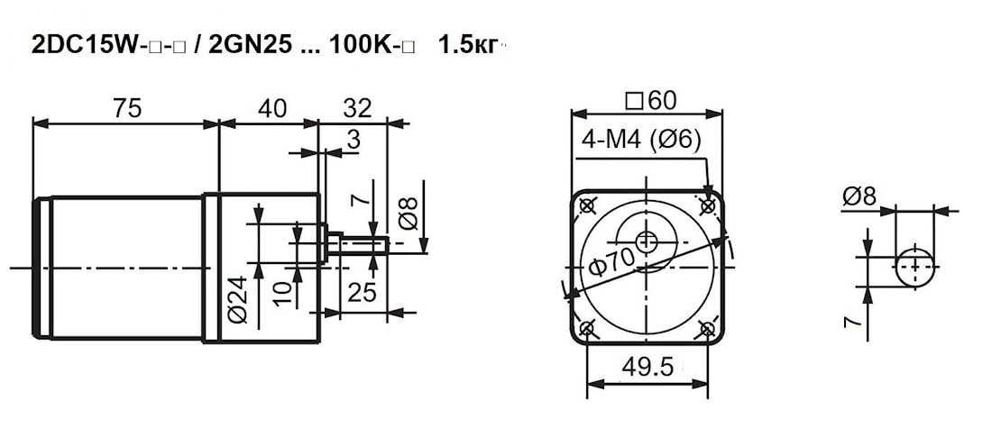 DC мини мотор редуктор 2DC15W-□-□ / 2GN25 … 100K-□ (15 Ватт) - компактный электромеханический привод постоянного тока, вращательное усилие на конце выходного вала: 0.8 Нм … 3.3 Нм (в зависимости от требуемого передаточного числа).