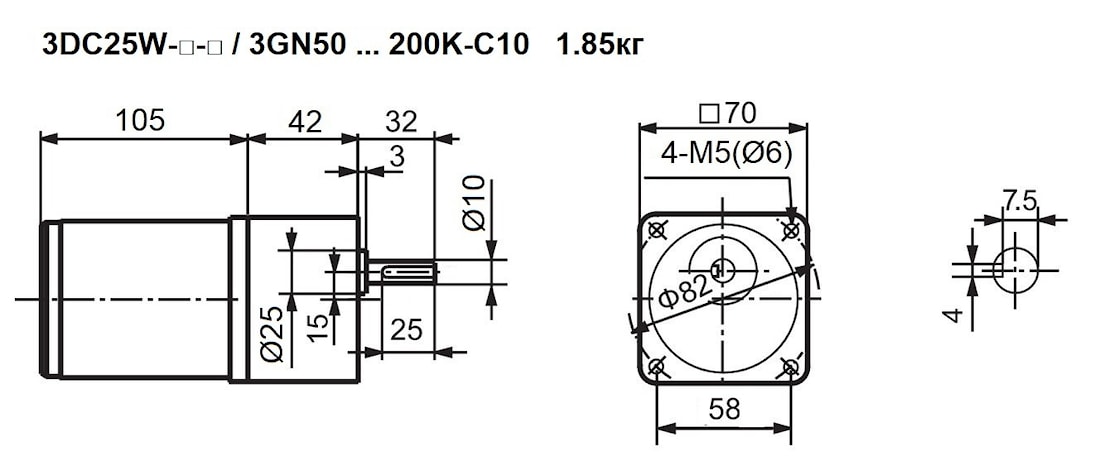 | DC Мотор-редуктор | 3DC | 25W | 110V | 1.8s | / | 3GN | 75 | K | C10 |