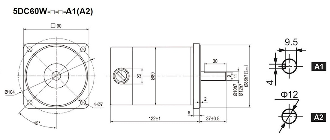 Электродвигатель постоянного тока 5DC60W-□-□-□ - это малогабаритный щеточный мотор с номинальной мощностью 60 Ватт (или 0,06 кВт), и подаваемым напряжением либо 12 В, 24 В, 90 В, 110 В, 220 В.