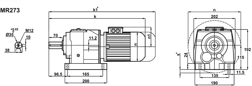 Соосный цилиндрический редуктор MR273 и NR273 Номинальная мощность - 0,18 кВт Выходные обороты: 6,0 об/мин ... 12 об/мин