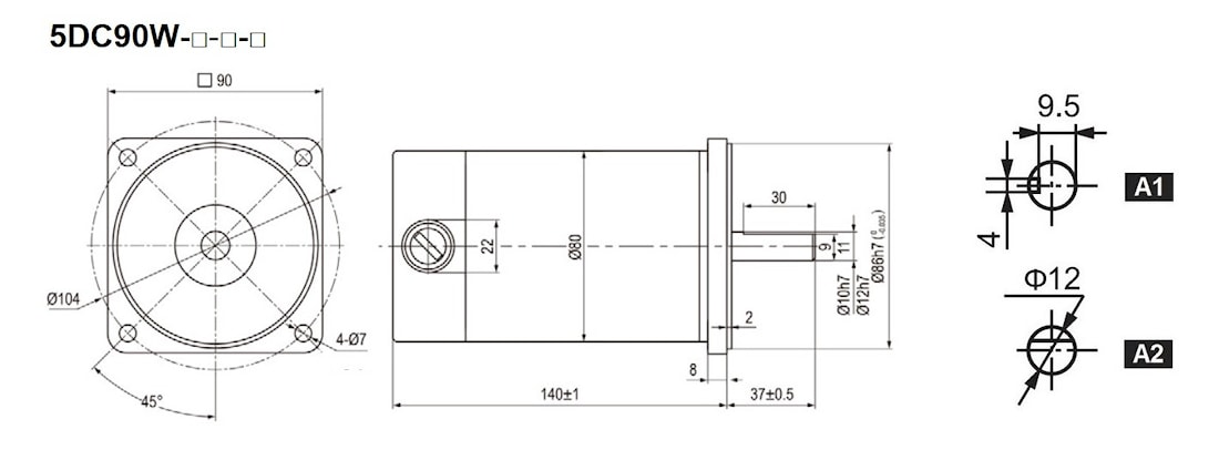 Электродвигатель постоянного тока 5DC90W-□-□-□ (90 Ватт) - коллекторный мотор постоянного тока, номинальной мощностью 90 Ватт (0,09 кВт), выходными оборотами 1800 об/мин, 3200 об/мин.
