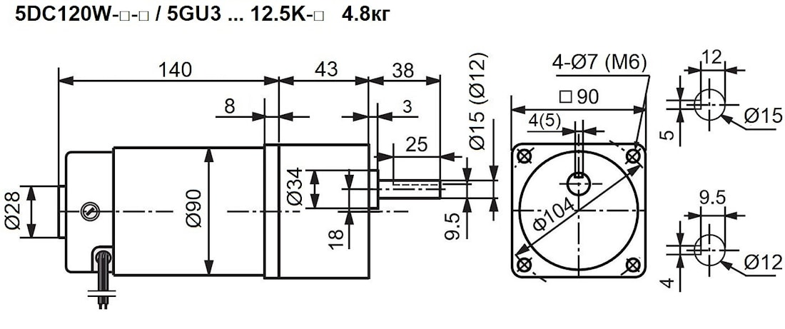 | DC Мотор-редуктор | 5DC | 120W | 24V | 3.2s | / | 5GU | 3 | K | C15 |