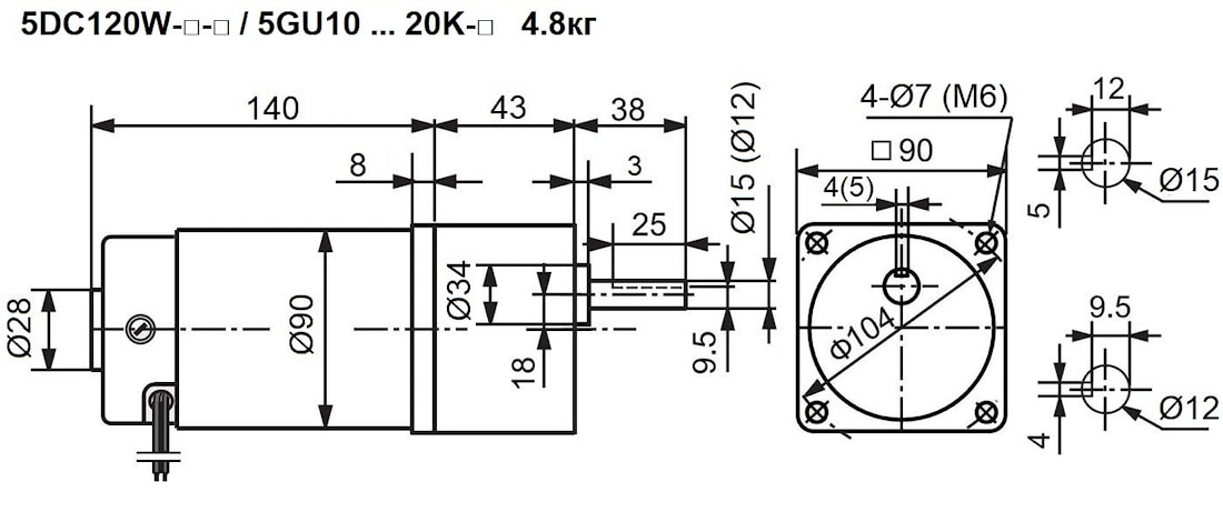 | DC Мотор-редуктор | 5DC | 120W | 24V | 3.2s | / | 5GU | 30 | K | C15 |