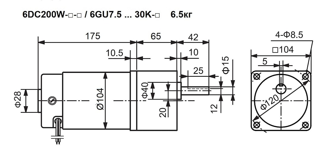 | DC Мотор-редуктор | 6DC | 200W | 110V | 3.2s | / | 6GU | 30 | K | C15 |